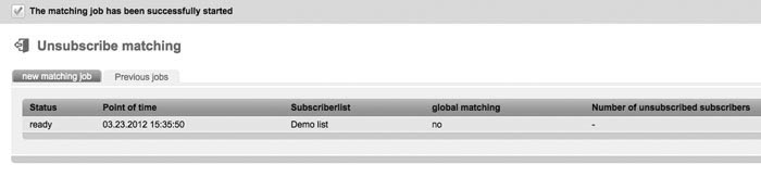 Now, pn.mail starts the matching and, after having finished, it informs you about the number of the deleted subscribers. |
