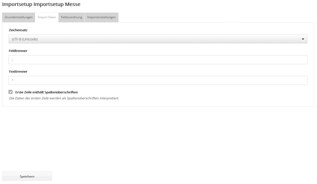 Neues Importsetup erstellenUm ein neues Importsetup anzulegen, klicken Sie auf 'Neues Importsetup'.